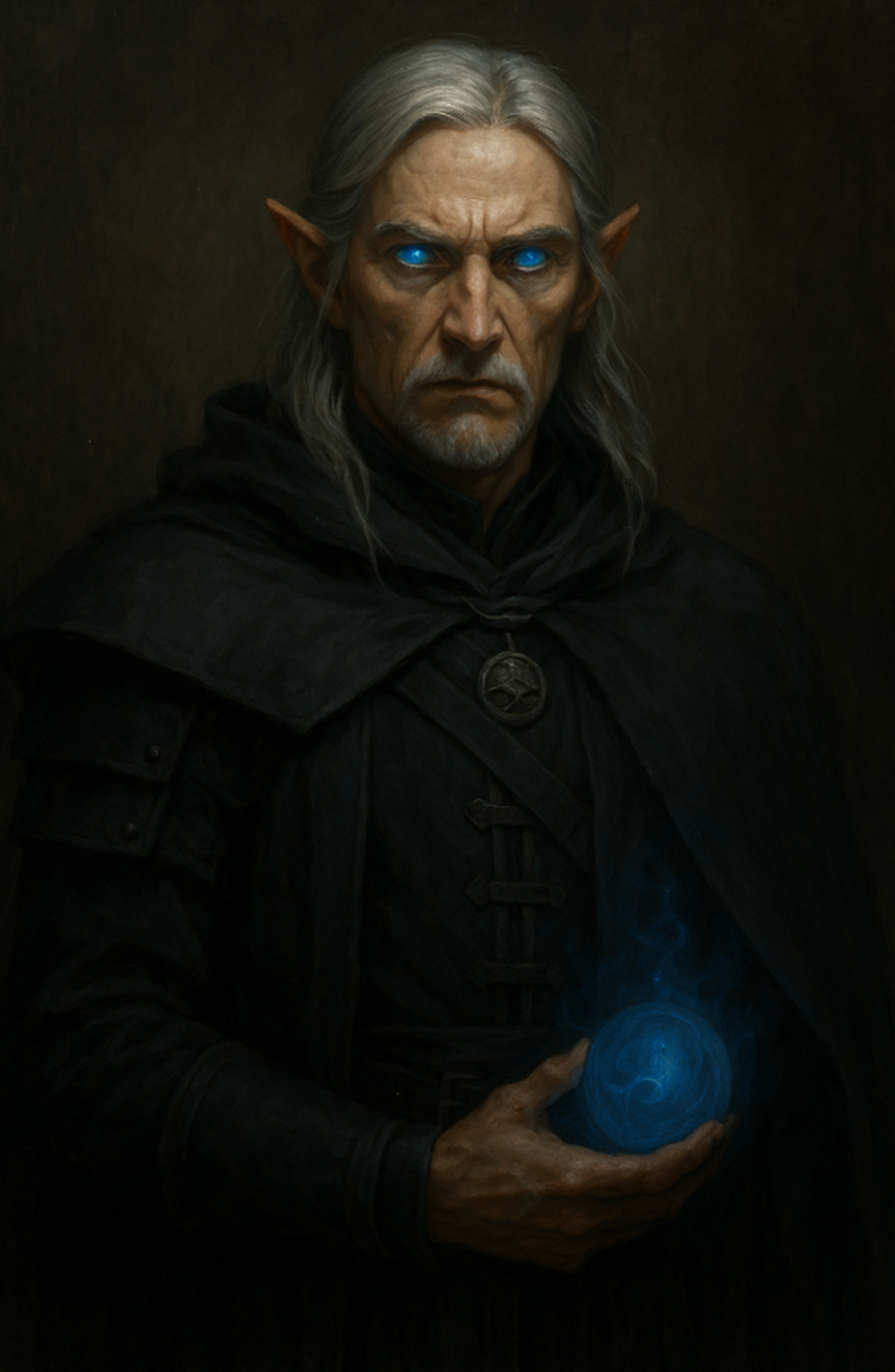 - Véu do Vazio: Calendir pode envolver o corpo em sombras azuis que absorvem magia arcana, deixando apenas os olhos brilharem.